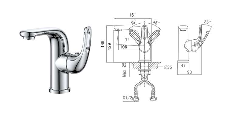 Top quality solid brass chrome plated bathroom single handle basin mixer