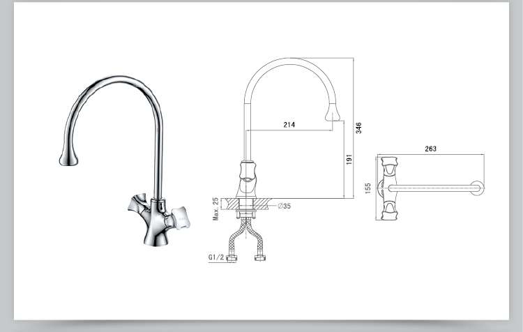 Modern design high quality brass elegant double handle kitchen sink faucet